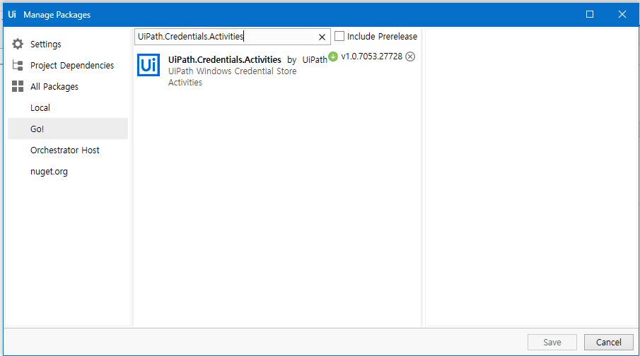 2. Click Setting and Check Go! or Add https://gallery.uipath.com/api/v2