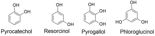 대부분의 폴리페놀들은 파이로카테콜(pyrocatechol), 레소시놀(resorcinol), 파이로갈롤(pyrogallol), 플로로글루시놀(phloroglucinol) 화학작용기들이 에스터(ester)기 혹은 C-C 결합이 반복적으로 연결된 구조를 가진다. 파이로카테콜과 레소시놀은 두 개의 하이드록실기를, 파이로갈롤과 플로로글루시놀은 세 개의 하이드록실기를 가진다. 에스터기에 연결될 경우 가수분해 반응을 일으킬 수 있는 탄닌이 되며, C-C 결합의 경우 가수분해가 일어나지 않는 탄닌이 된다.